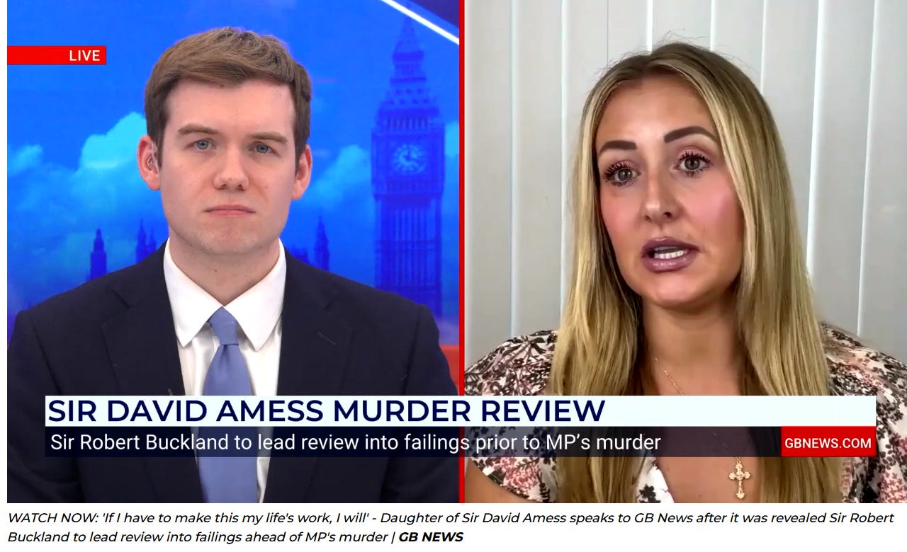 Speaking to GB News’s Charlie Peters for the first time since the review was confirmed, Ms Amess also paid tribute to the families of those killed in the Nottingham attacks in 2023 who also fought for full inquiry into the killing of a loved one.