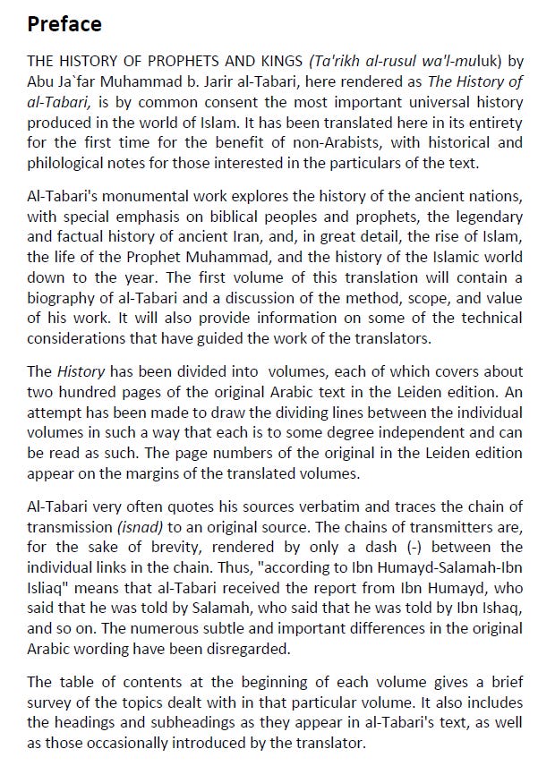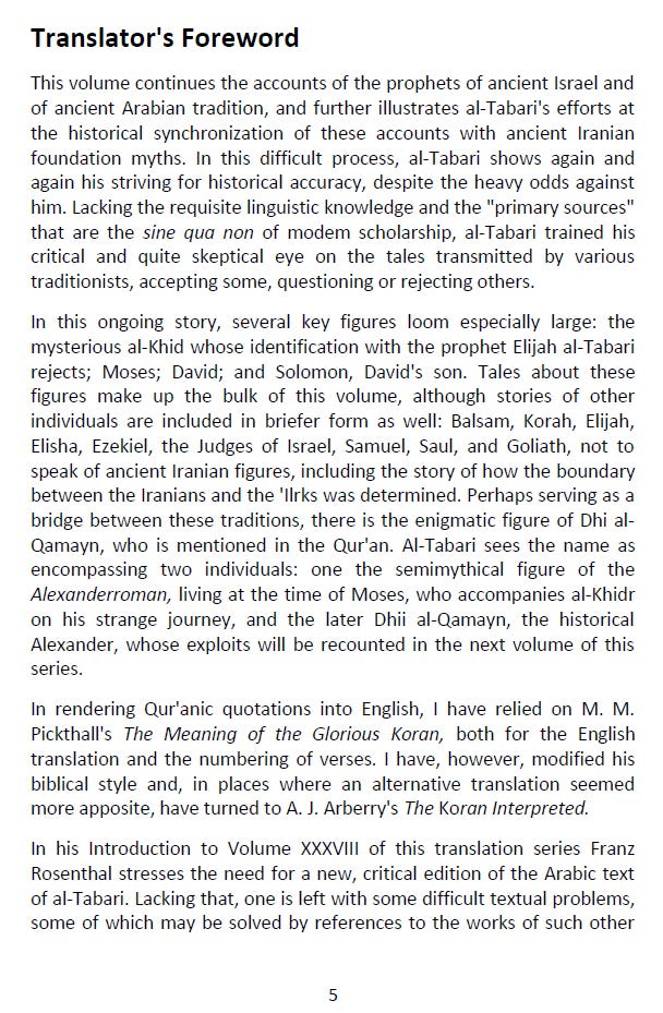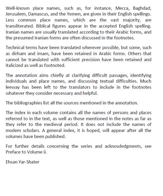 This volume continues the accounts of the prophets of ancient Israel and of ancient Arabian tradition, and further illustrates al-Tabari’s efforts at the historical synchronization of these accounts with ancient Iranian foundation myths. In this difficult process, al-Tabari shows again and again his striving for historical accuracy, despite the heavy odds against him.