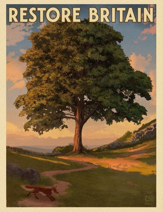 ‘Sycamore Gap’ my first completed painting in a series of posters I’ll be doing in the style of the old rail adverts for @RestoreBritain_ featuring all the iconic places of our sacred lands of Britain