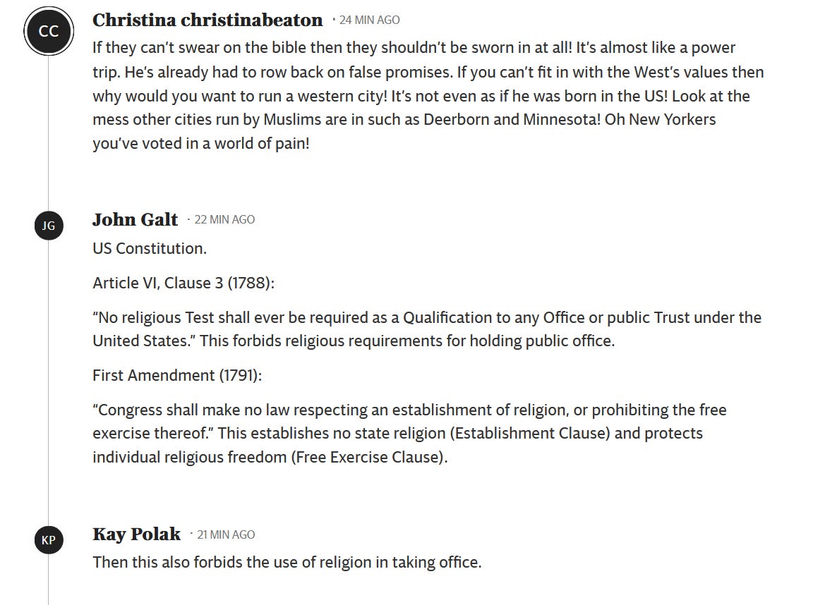 Telegraph: Zohran Mamdani becomes first New York mayor sworn in using Koran