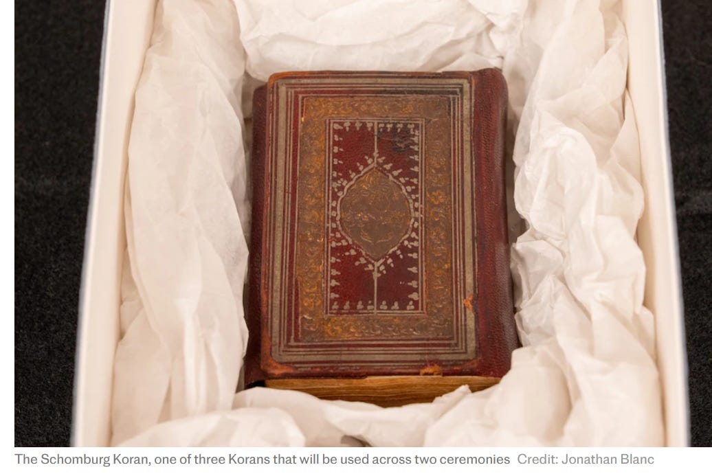 He will use three Korans throughout the day, including his grandfather’s for the midnight ceremony, according to the New York Times.